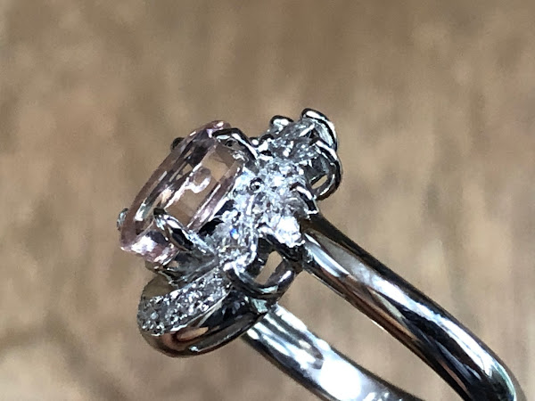 ラウンドのメレダイヤモンドもルーペで見て、インクルージョンを確認できます。表面が欠けているものもありましたが、そもそもすごく小さい事と、枠に埋まる形でセットされているので、その辺はあまり深く考えるところでもないかな?と・・・