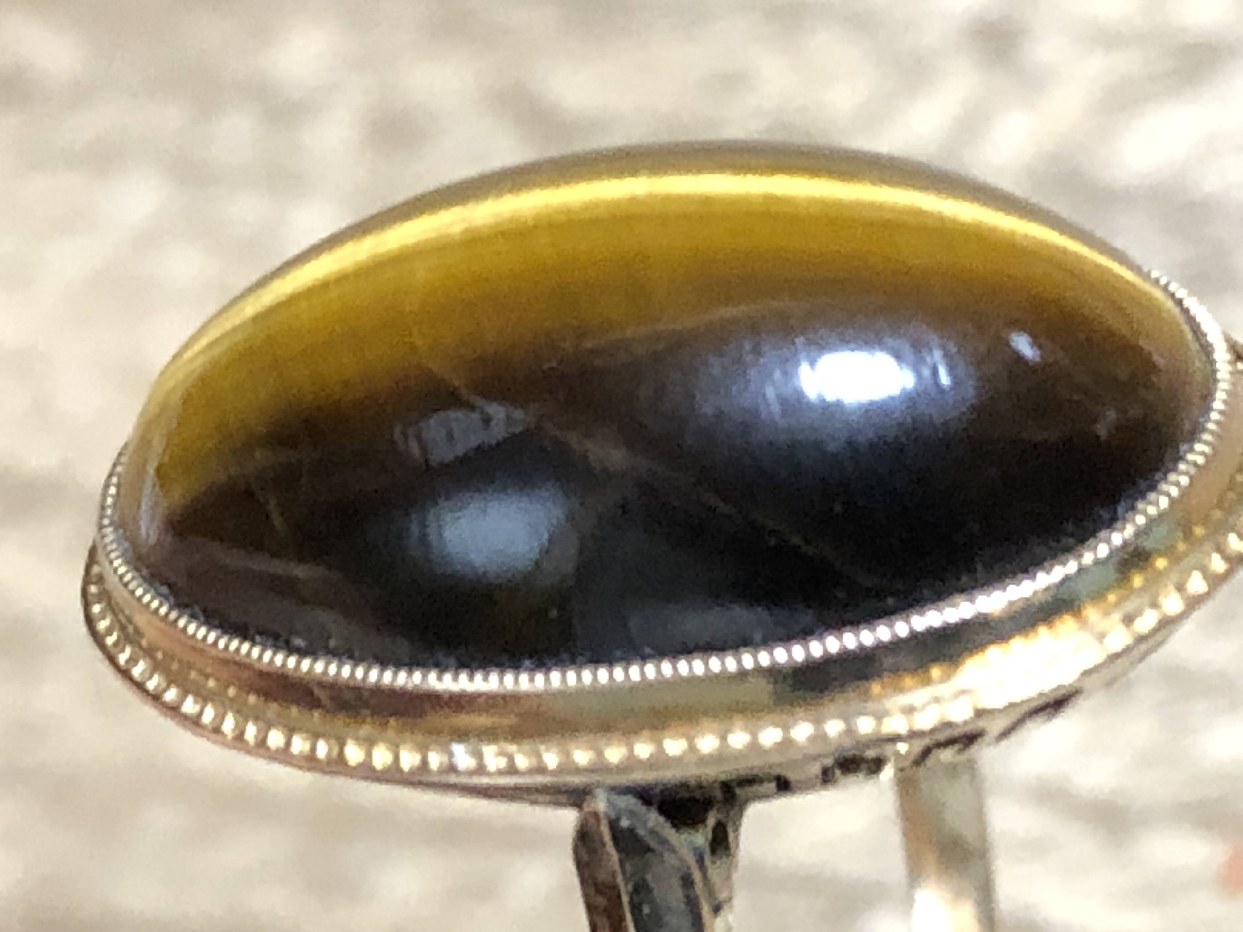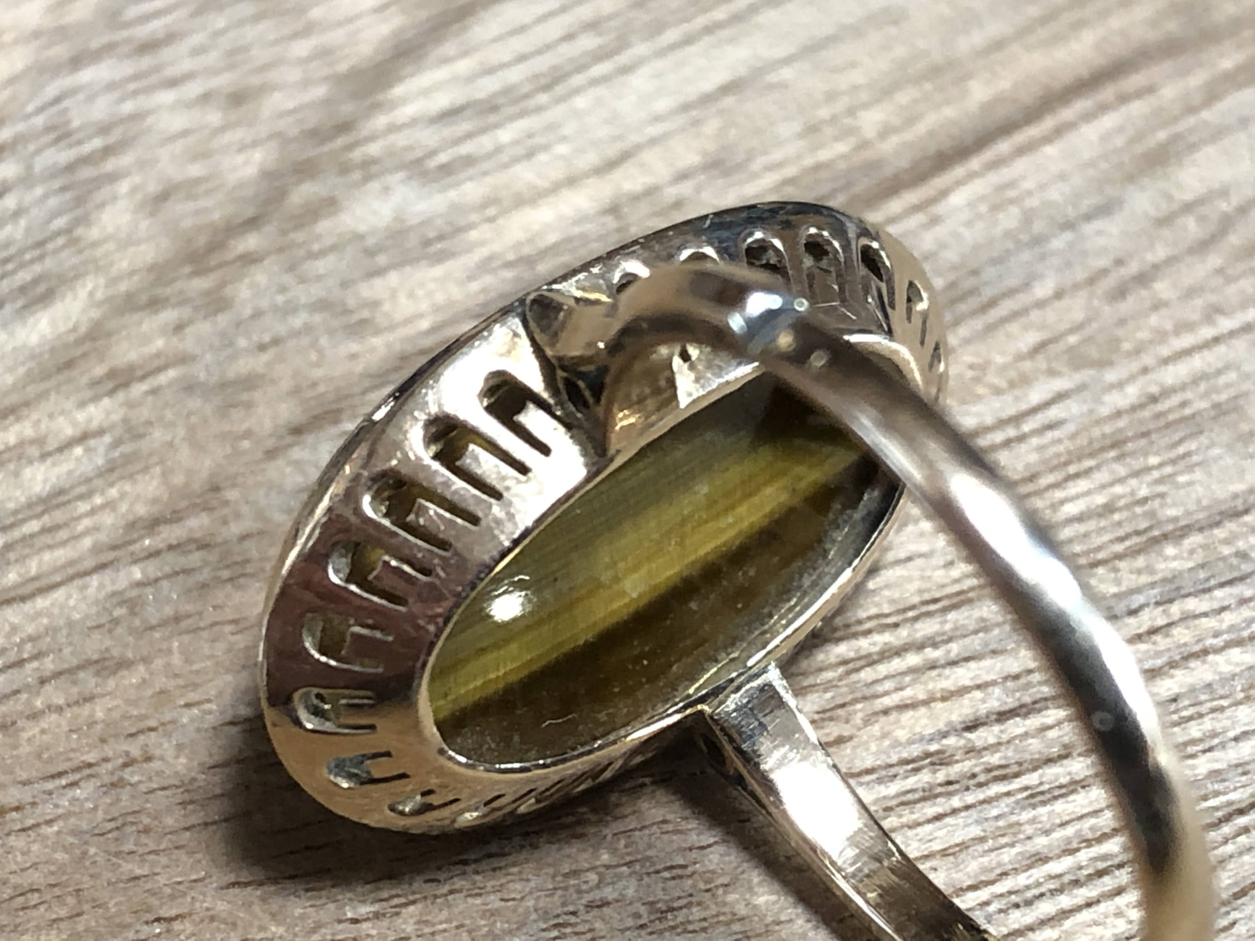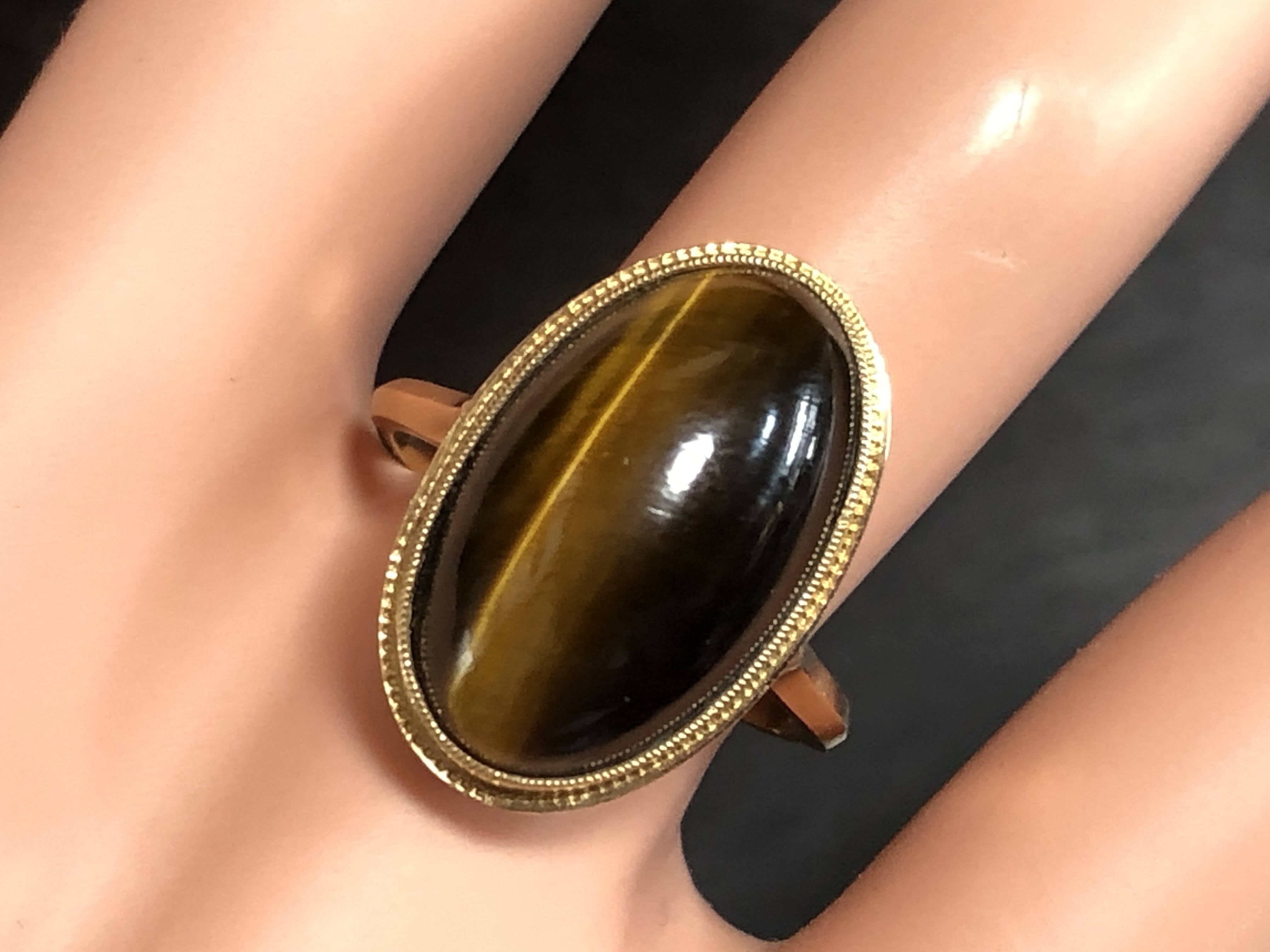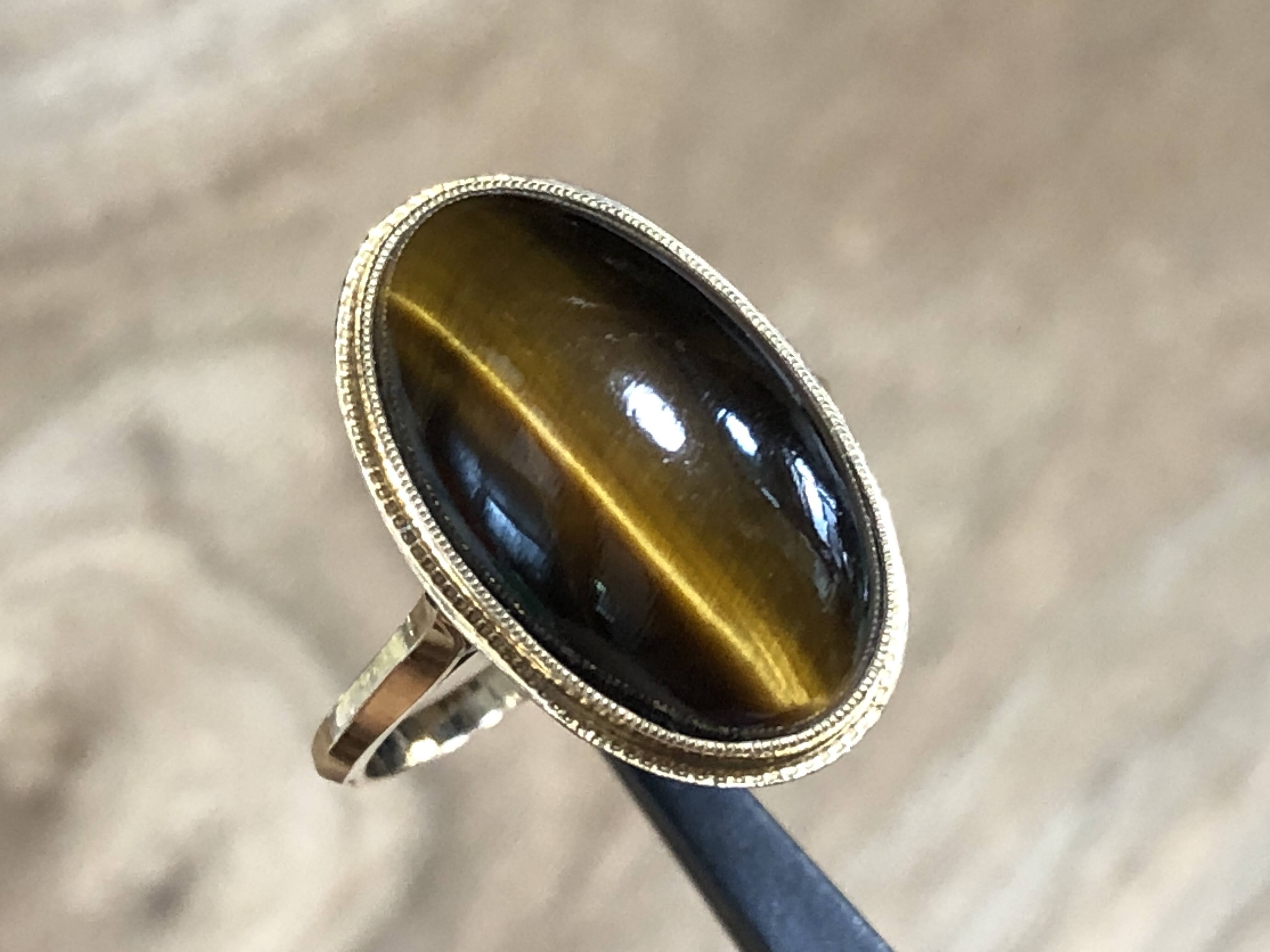 タイガーアイ ミル打ち 王冠透かし K18 リング #12.5 昭和ジュエリー #VJJ0T063