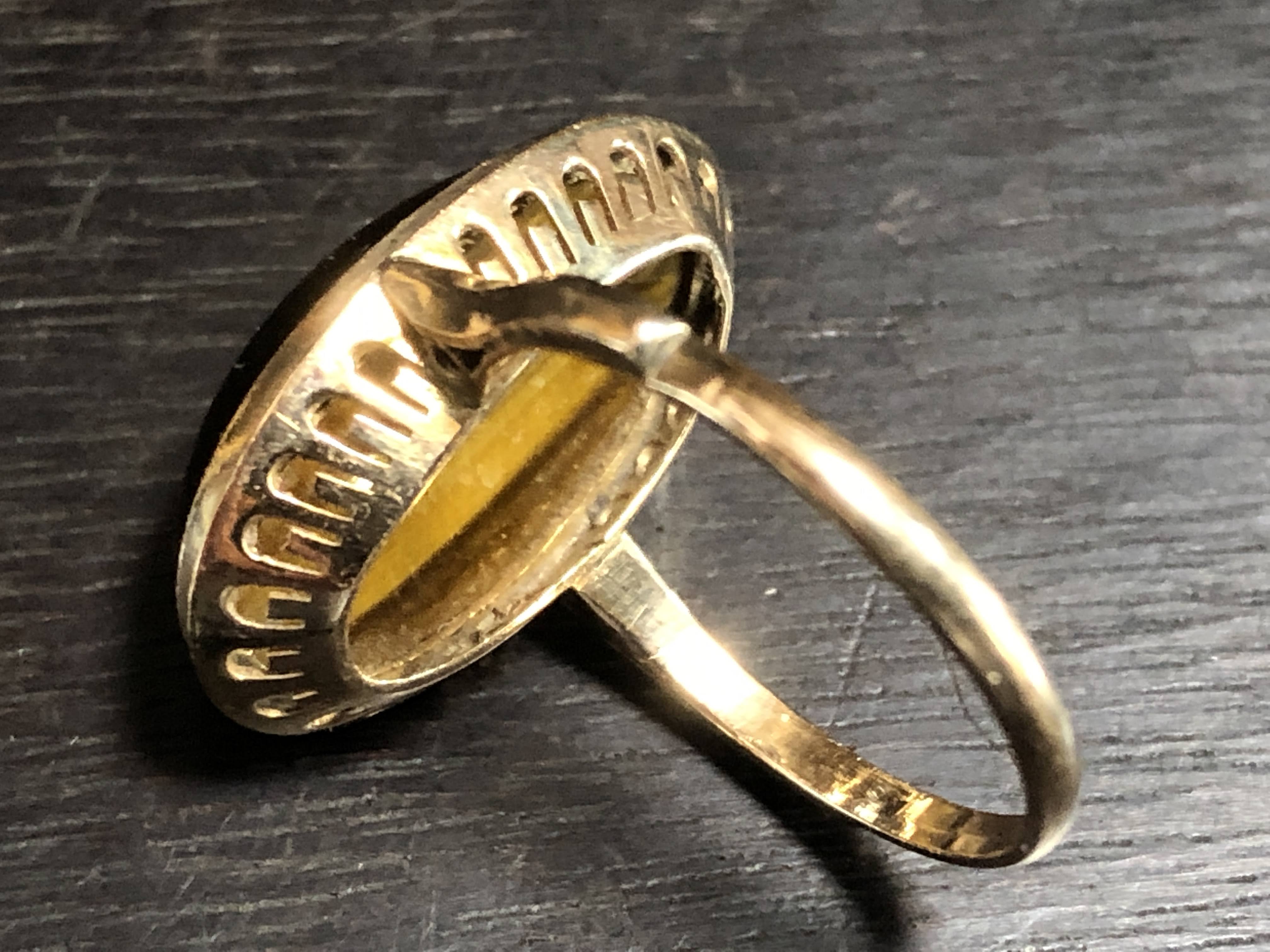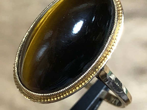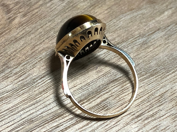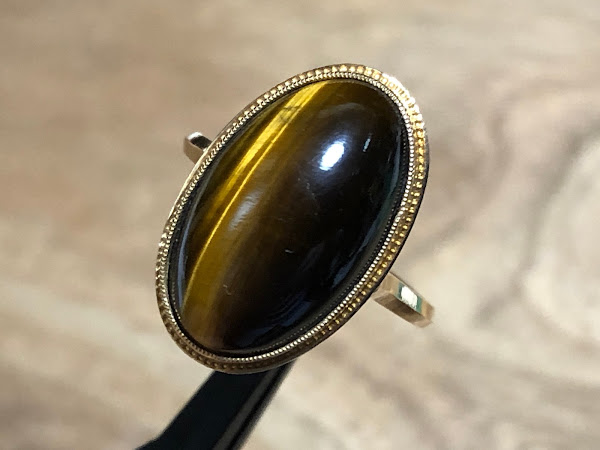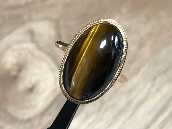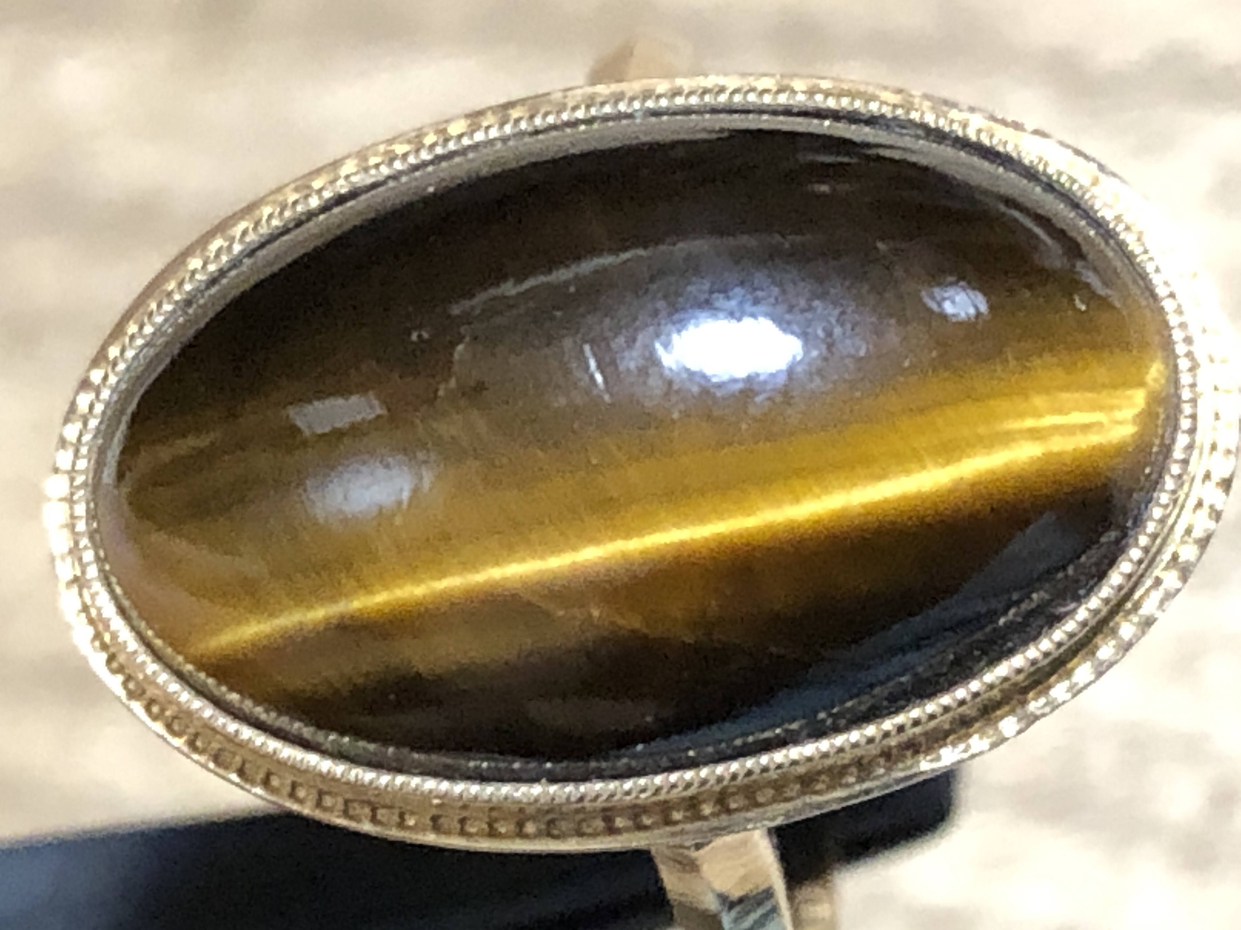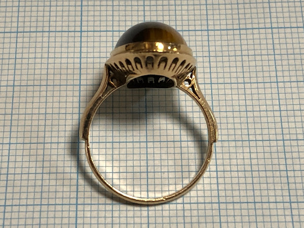 タイガーアイ ミル打ち 王冠透かし K18 リング #12.5 昭和ジュエリー #VJJ0T063