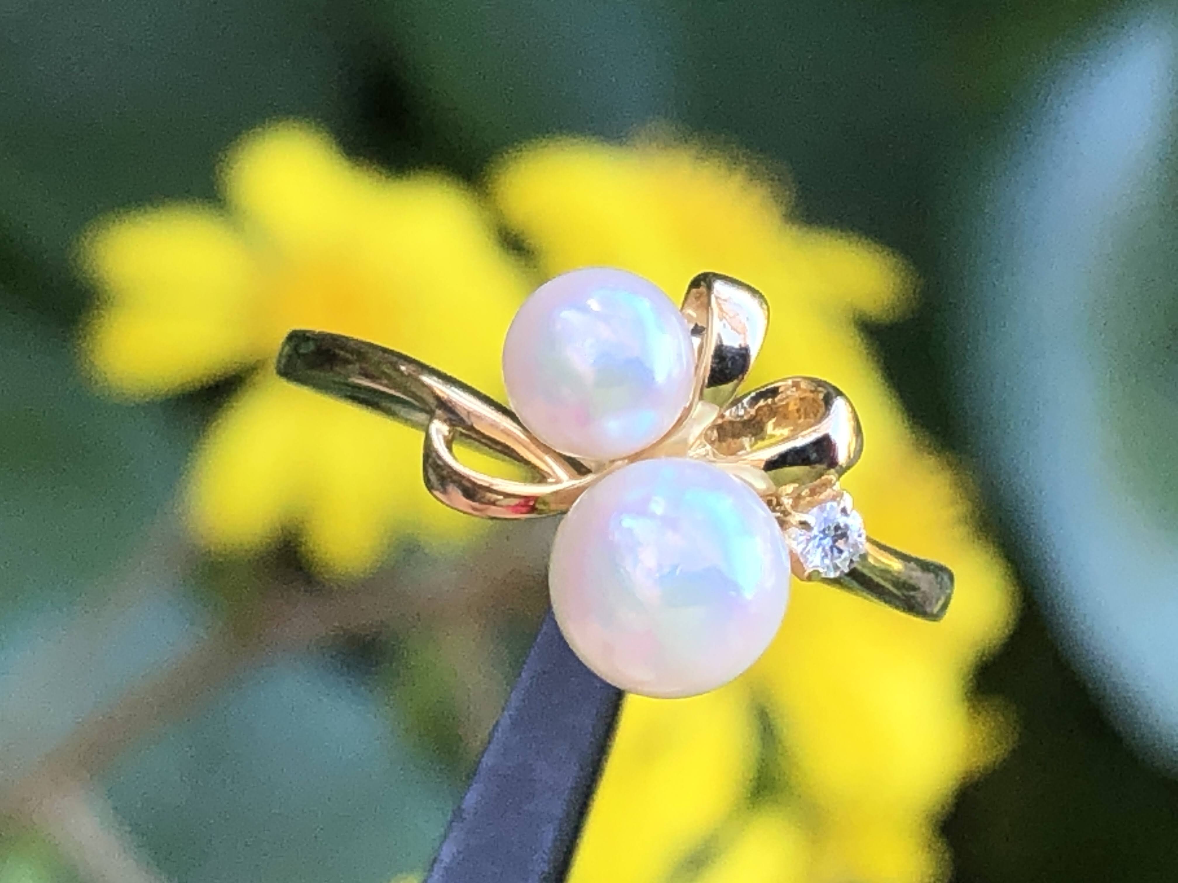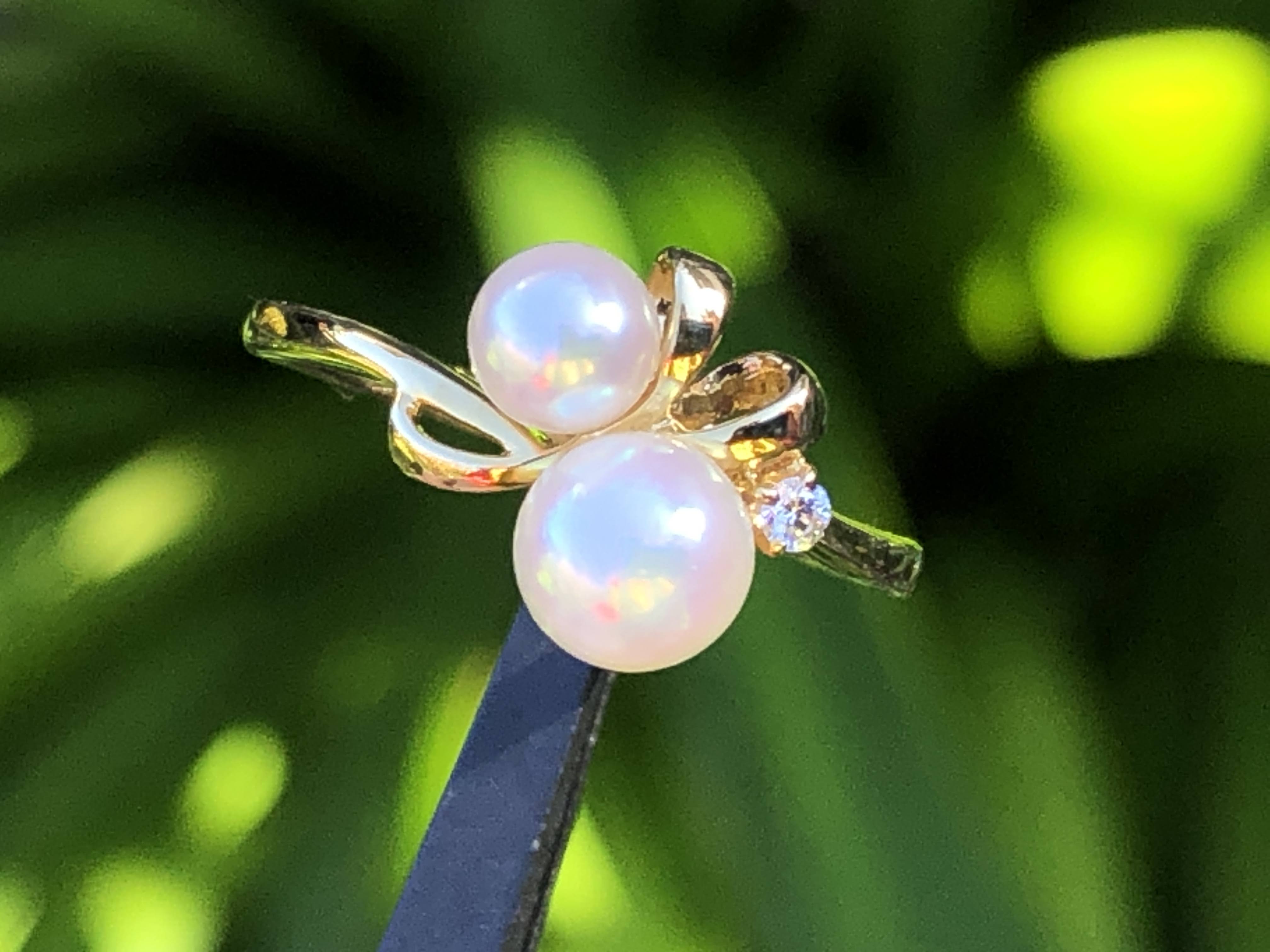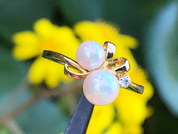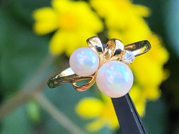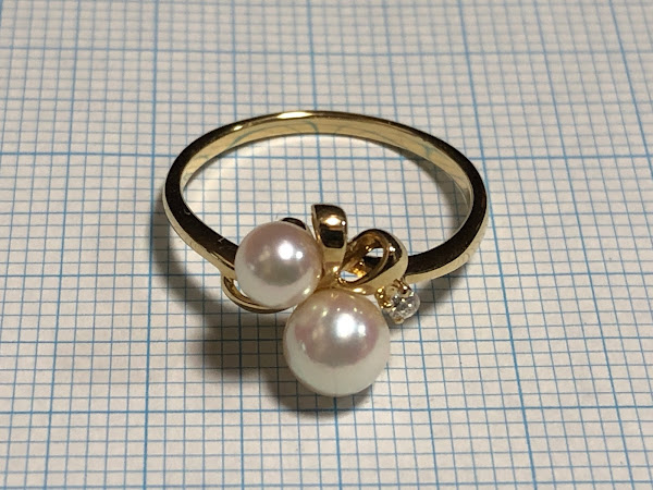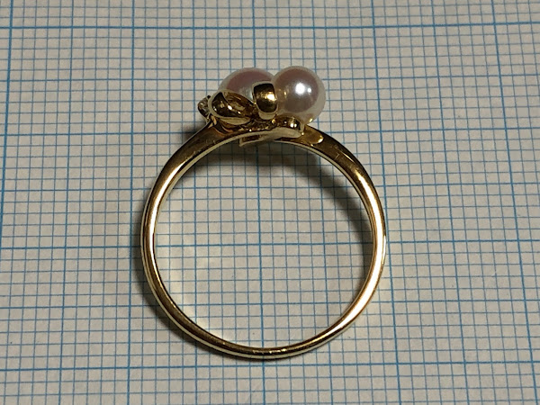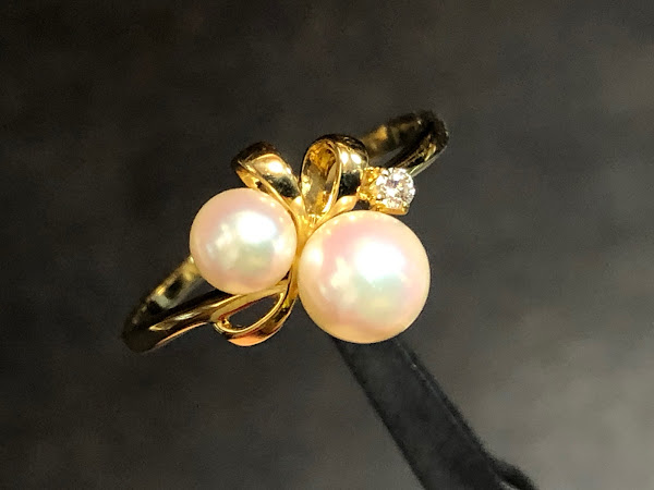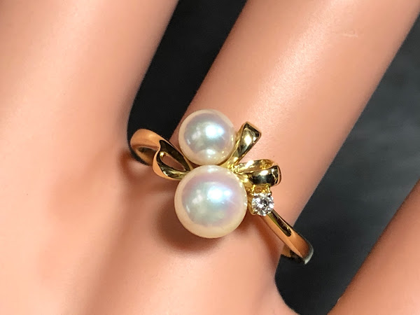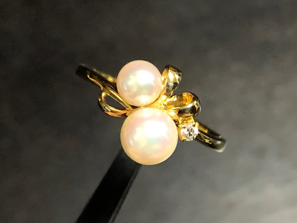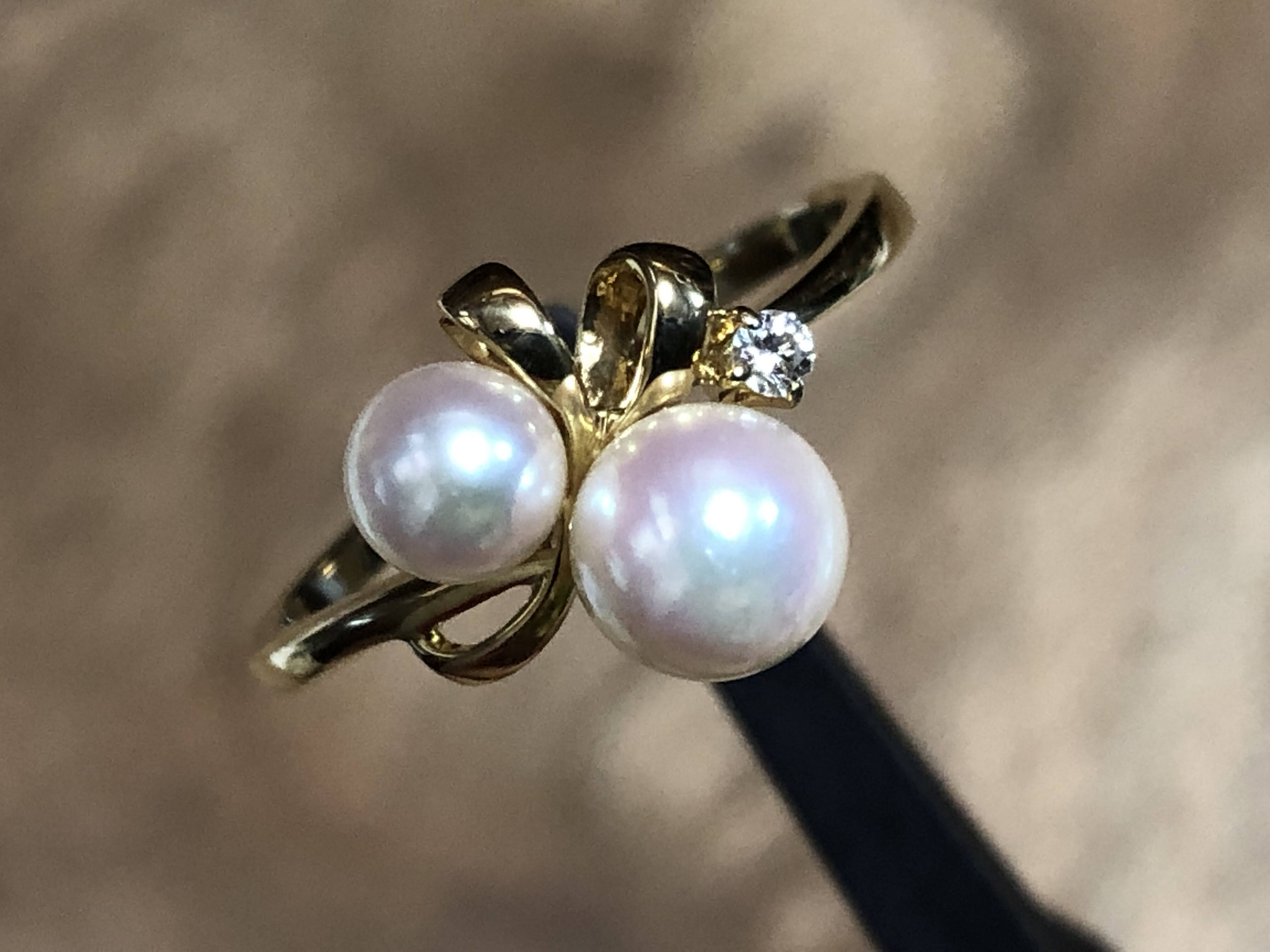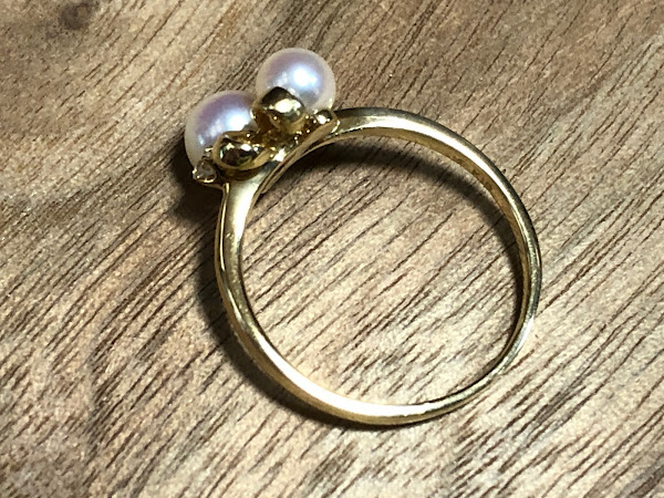 さて、アコヤ真珠を2石使ったミキモトのリングです。