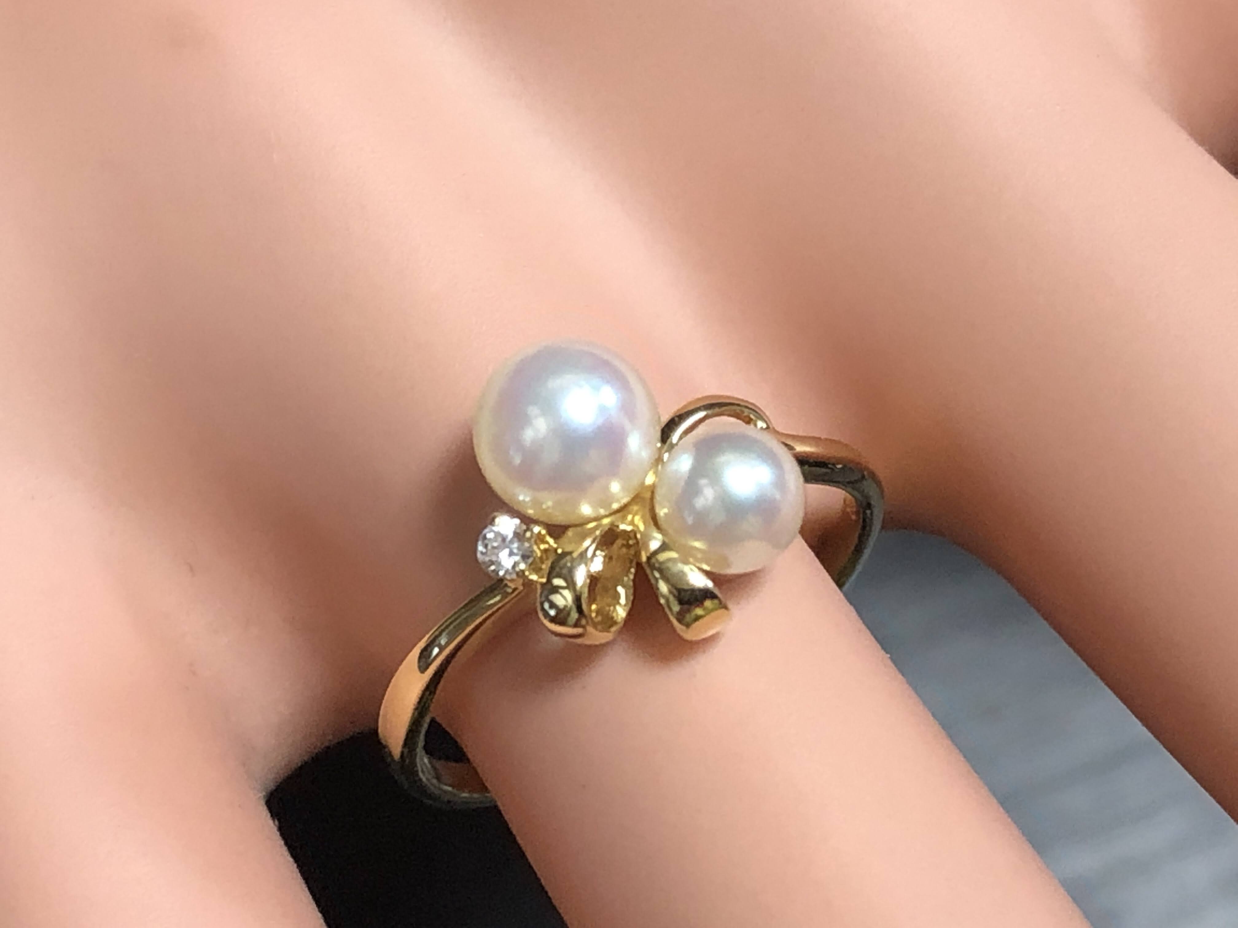 ミキモト あこや真珠 ダイヤモンド リボン K18 リング 平成 #VJJ0N041
