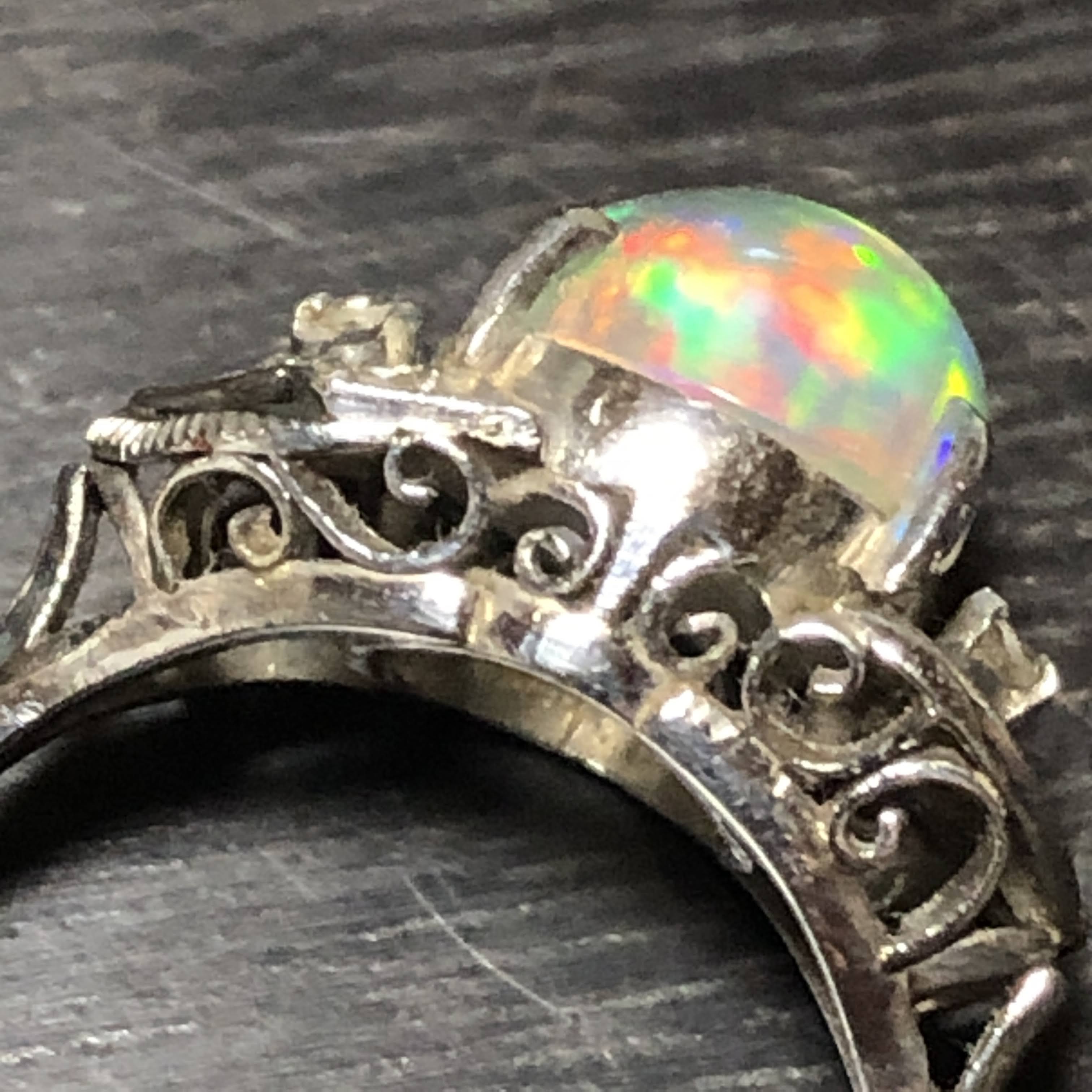 ウォーターオパールは綺麗っちゃ綺麗なのですが、これは色彩が強く出すぎている等、写真でうまくお伝えできてる気があまりしません。