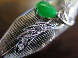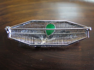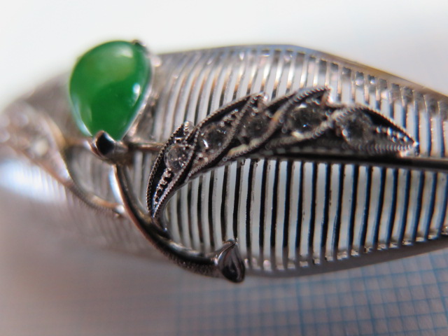 千本透かし 翡翠 ブローチ 昭和ジュエリー